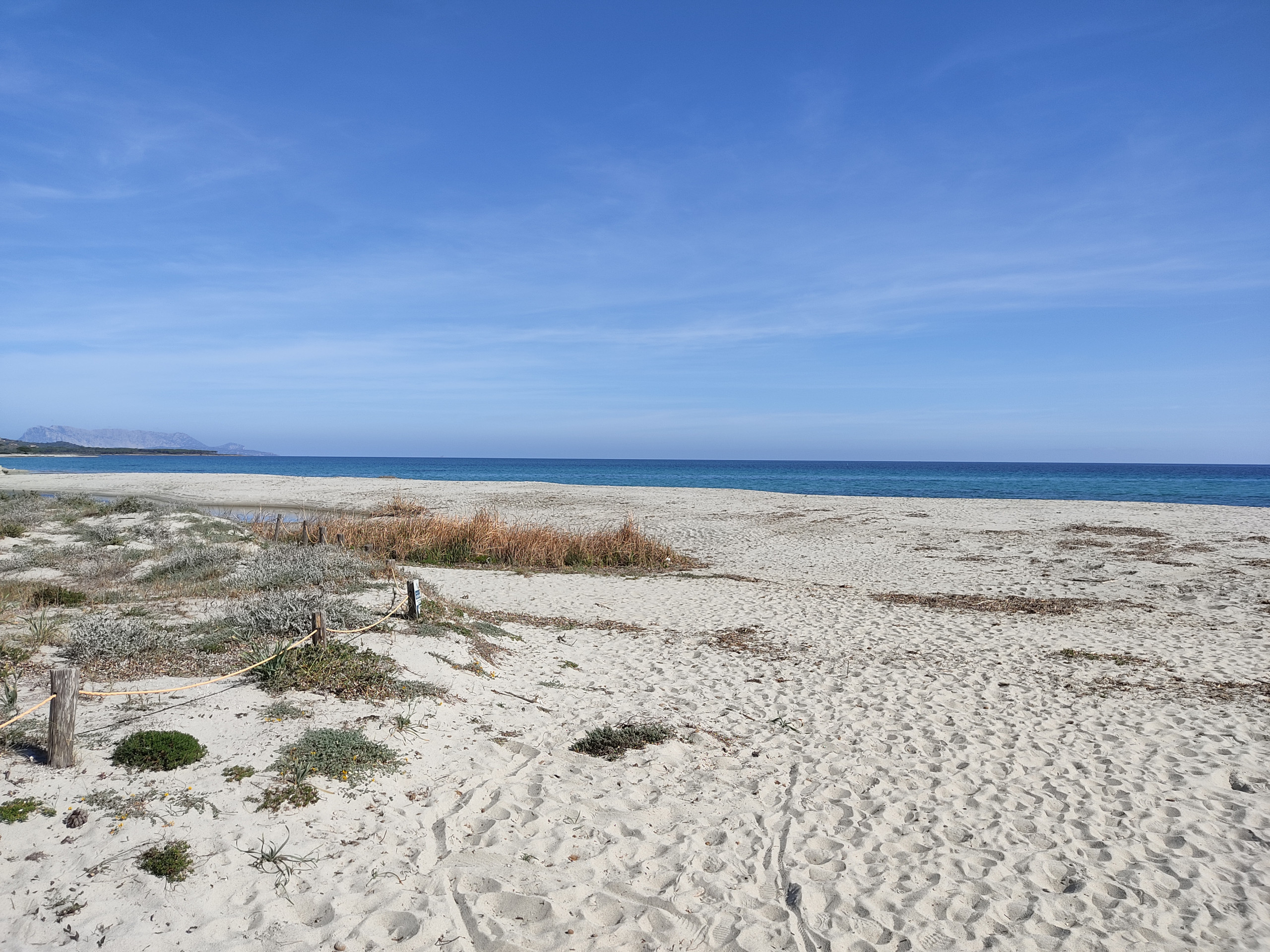 Strand von Capo Comino, etwa 2,5 km entfernt, mit feinstem Sand und großen natürlichen Dünen
